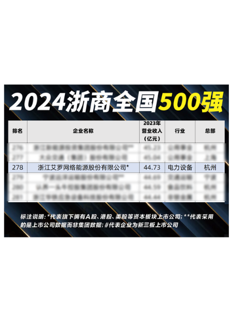 入选“全球新能源企业500强”“浙商全国500强”